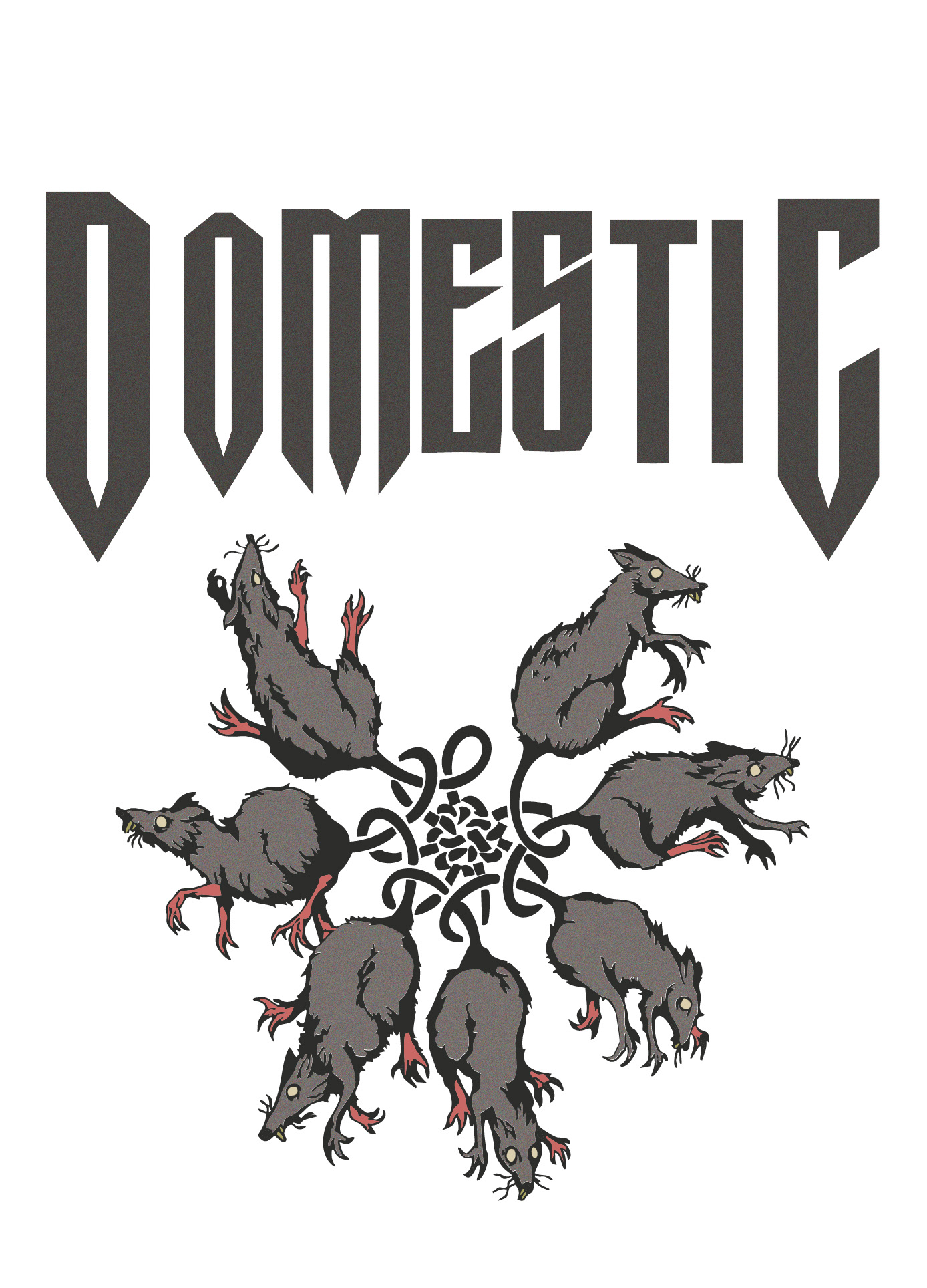 Domestic Rodent is an online clothing brand specializing in graphic T-shirts. Their “Originals” line features illustrations of rodents paired with designs that riff on vintage band merchandise and rock music lyrics. During my time working with the brand, I helped create graphics for several shirts and developed custom typography to match their bold, music-inspired aesthetic. My role combined illustration, type design, and brand styling to support the look and personality of their apparel line.