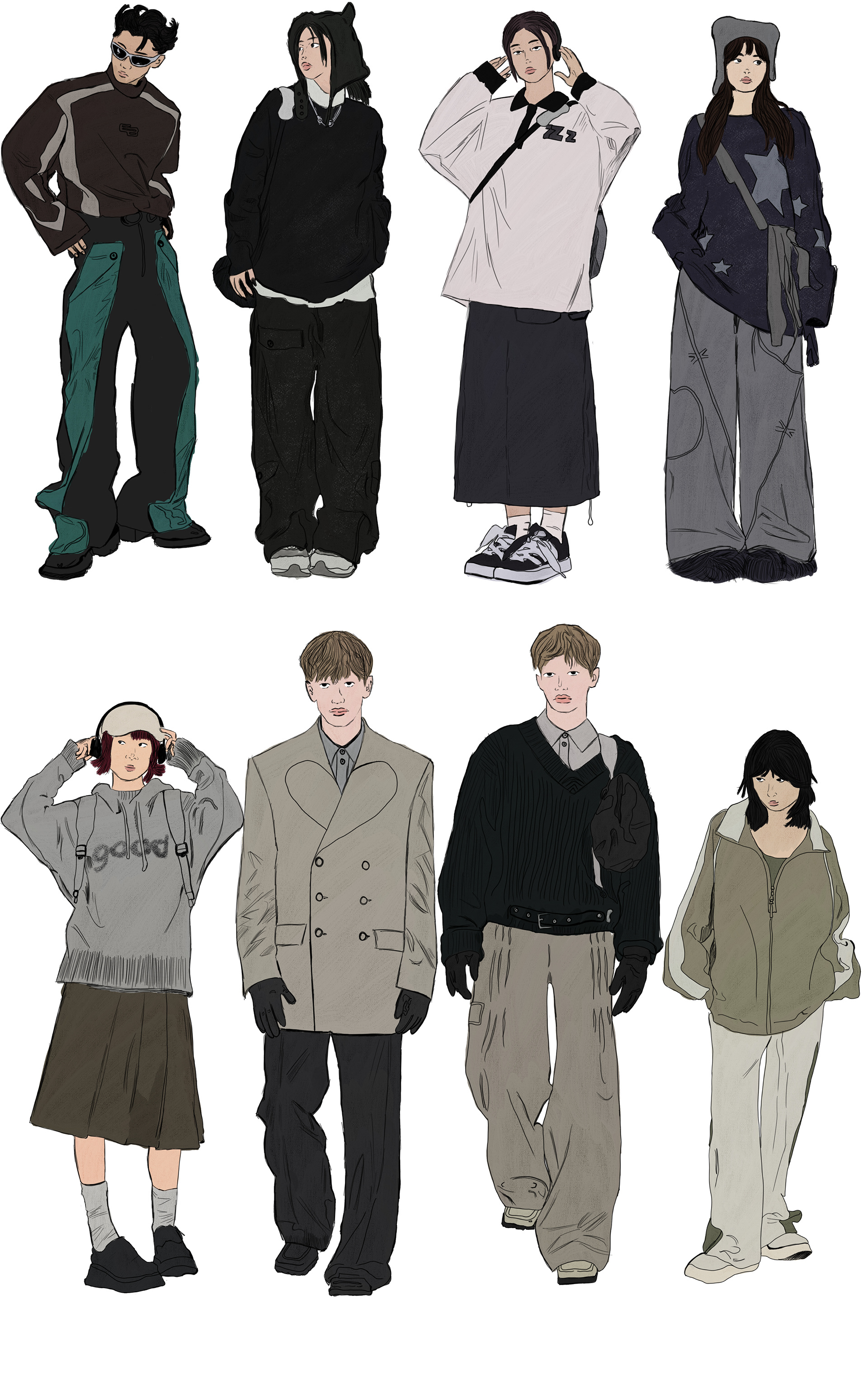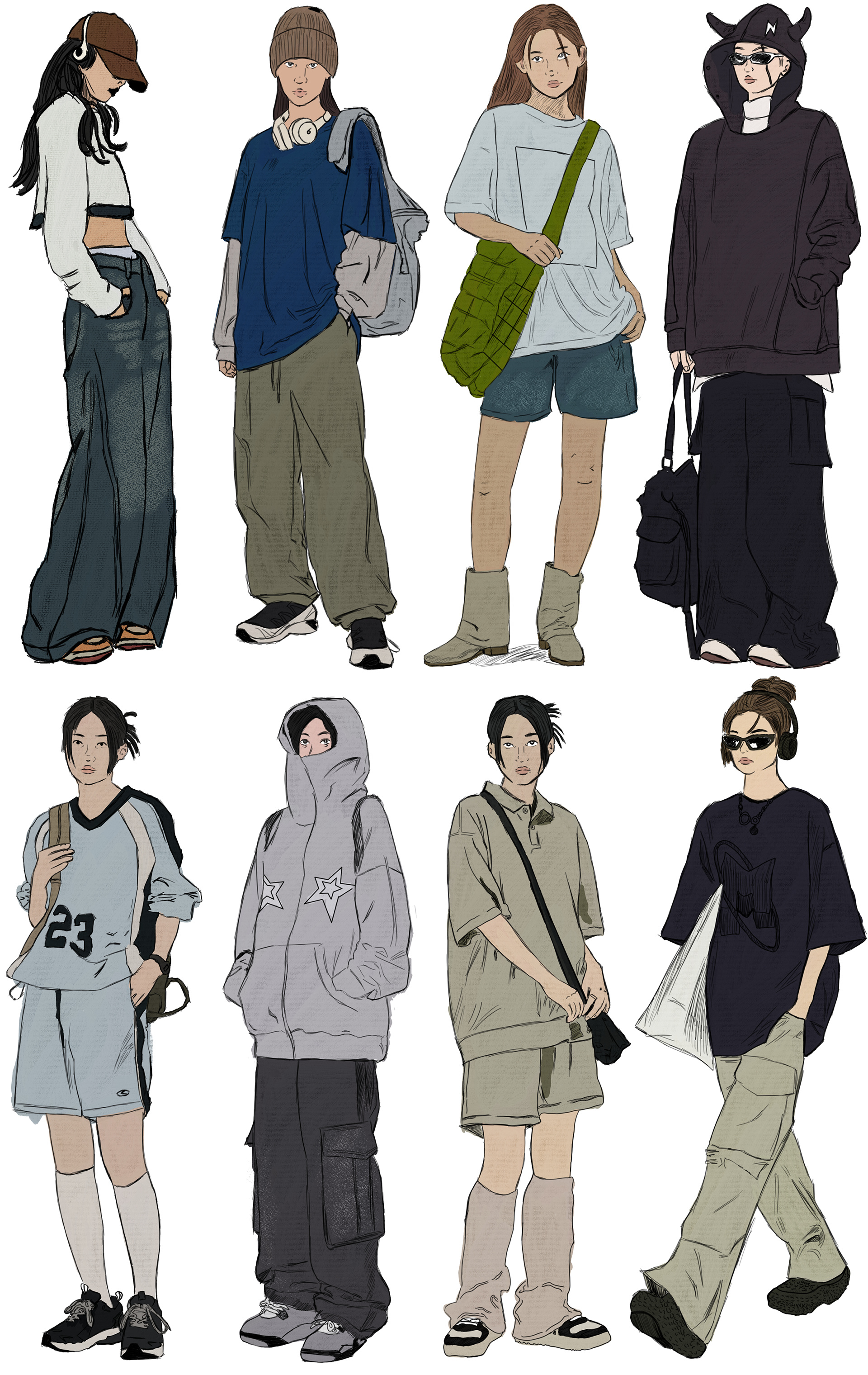 This project is a study of various outfits, focusing on the shapes, forms, and structural details of clothing. By keeping the faces minimal, the emphasis shifts entirely to the garments, encouraging viewers to explore the textures, silhouettes, and design choices within each look. The result is a series that highlights fashion through form while maintaining a clean and intentional visual style.